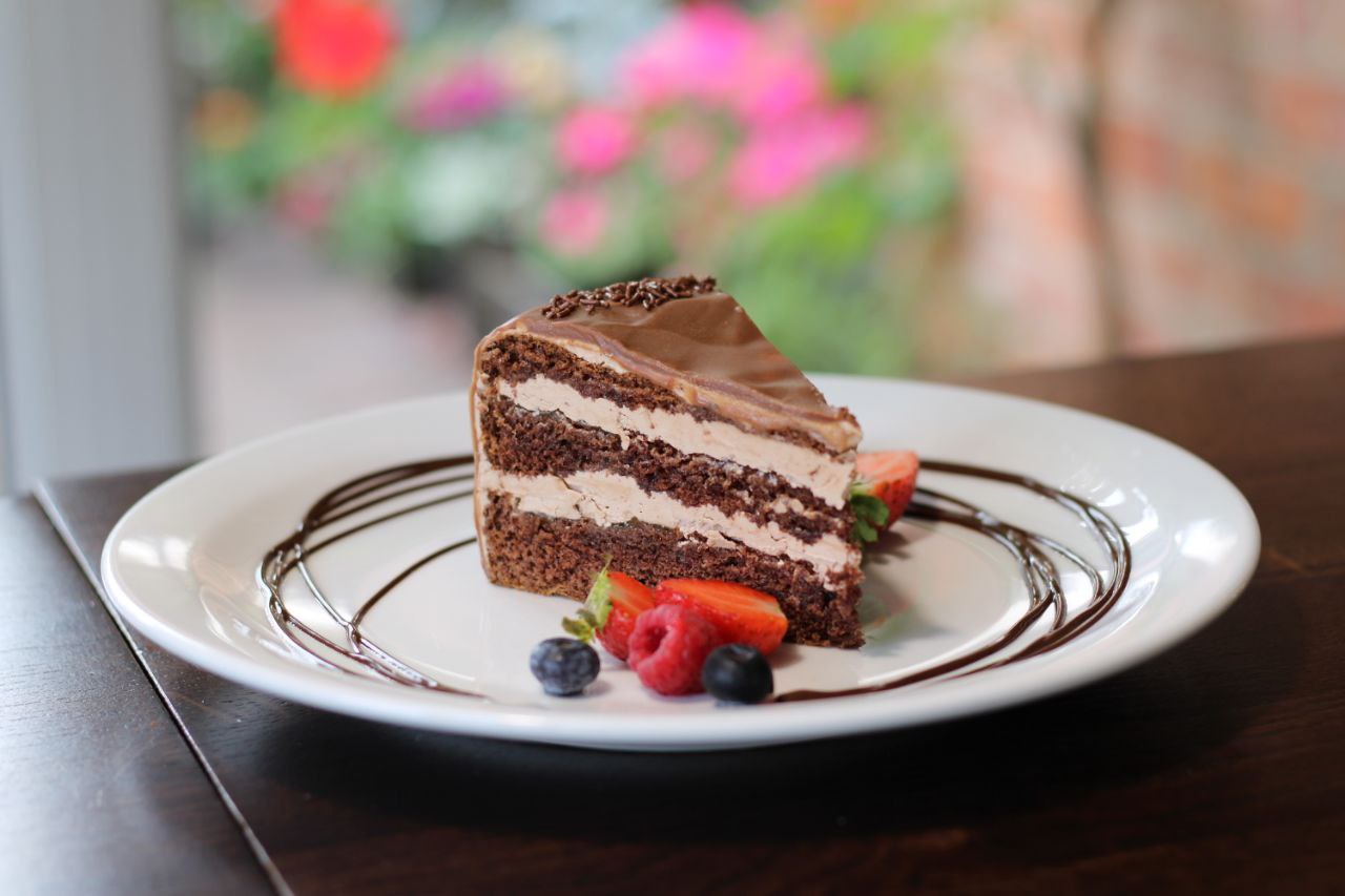 (Rich chocolate cake layered with creamy chocolate filling.)